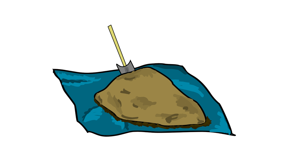 To turn the pile, you take the initial pile, the one with the most recent additions, and turn it over onto a tarp using the shovel, so what was on the bottom is now on the top. Mixing in more browns is also helpful. This introduces lots of air and allows decomposition to happen more quickly.